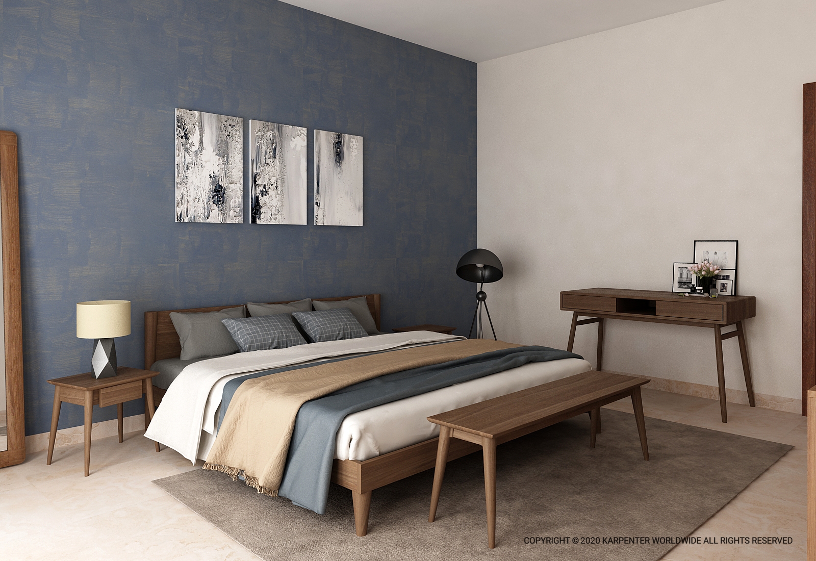 Wood is a classic and timeless material, prized for its durability and warmth. Solid wood frames, such as oak or teak, can add a natural, grounding effect to your room and complement a wide range of bedroom furniture, like a matching nightstand or sideboard cabinet. Wood is also a sustainable choice, especially if it is sourced from certified suppliers, making it a long-lasting and eco-friendly option.
