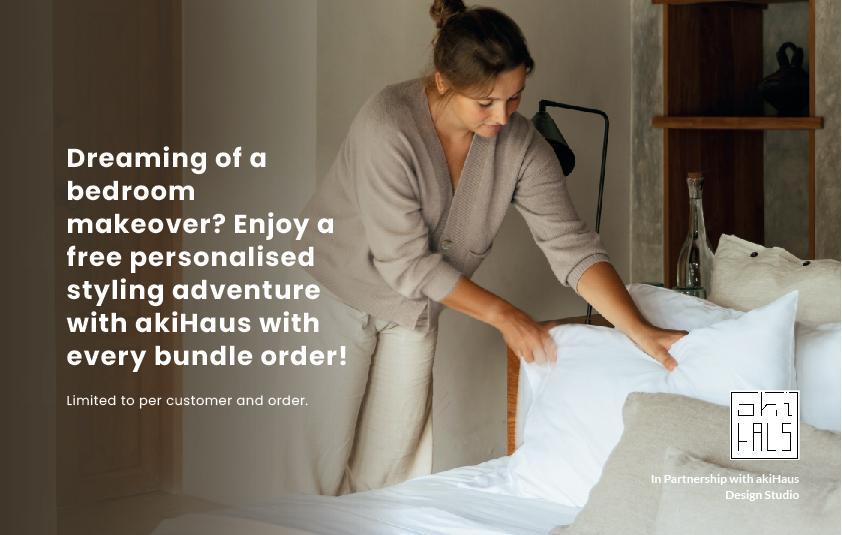 Upgrade Your Sleep Experience: Enjoy 10% Off Mattress and Frame Bundles + Get a FREE 1-Hour Personal Bedroom Styling Session with akiHAUS. Plus, Receive $750 Worth of Freebies! Promotion Period: 1st April- 30th April 2024