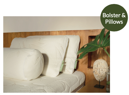 Experience Heveya® Pillows and Bolsters for unparalleled comfort, offering superior neck and optimal lumbar support. Choose your ideal shape and firmness!